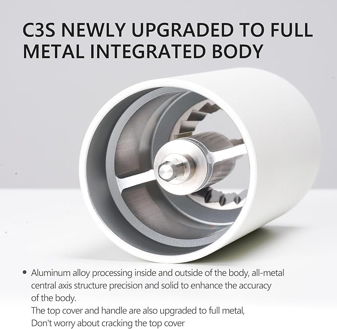 TIMEMORE Chestnut C3S Manual Coffee Grinder with CNC Stainless Steel Conical Burr Capacity 25g, Internal Adjustable Setting, Double Bearing Positioning for Travel, Camping, White