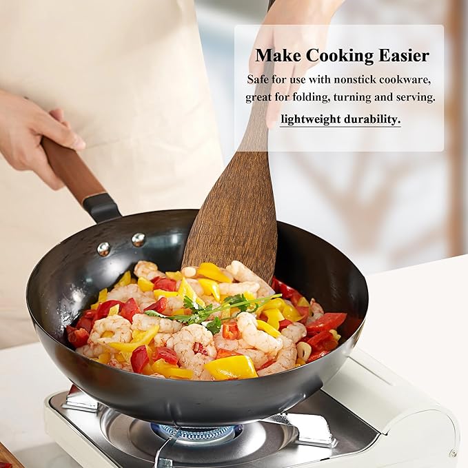 Wooden Spatula Nonstick Turner Acacia Wood, 12" Long Handle Flat Frying Spatulas Handmade for Kitchen Gifts, Ideal Cookware Utensils for Cooking Eggs, Fish, Pancakes, 2 Pack