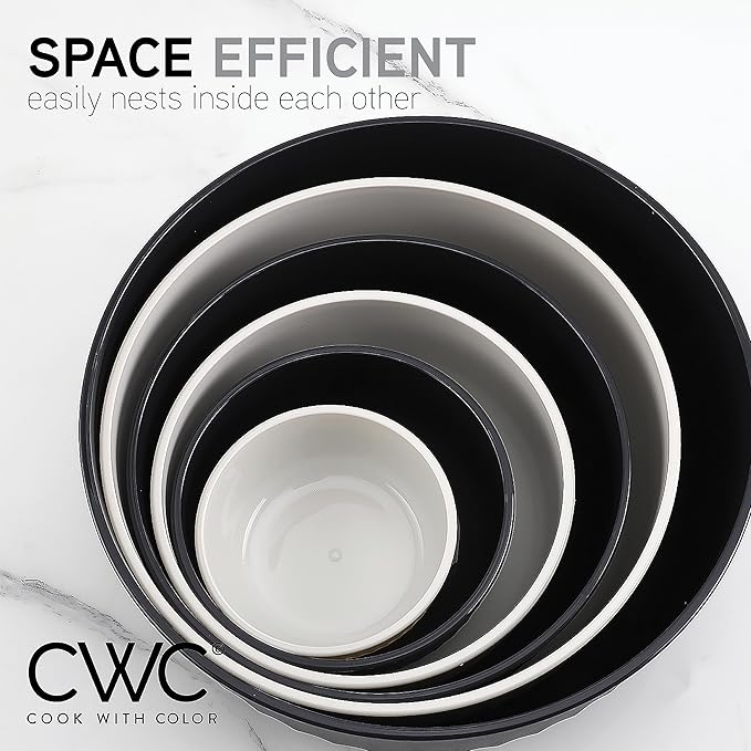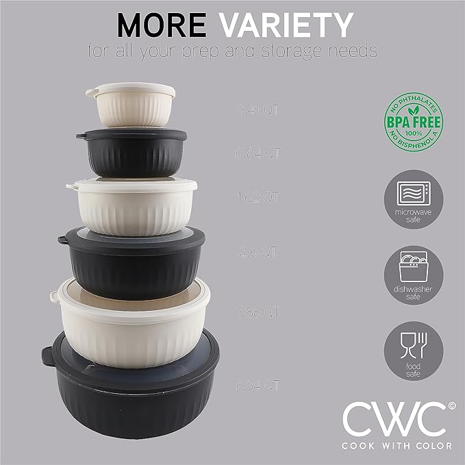 About This Cook with Color 12 piece plastic mixing bowl set - non slip bowls with lids; easy to clean,... Read more
