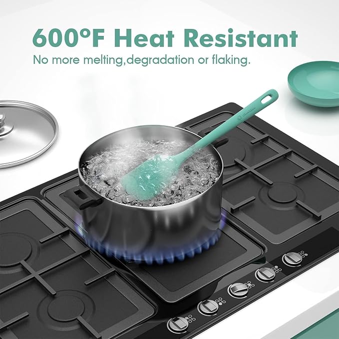 • Premium 100% Food Grade Silicone: The silicone spatula set is made of healthy and friendly material, resistant to high temperatures. No more melting, cracking and worrying