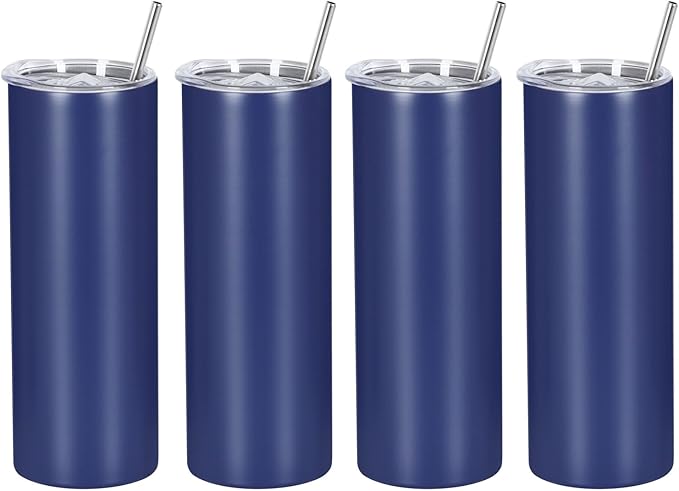 4 Pack 20 Oz Straight Skinny Tumblers,Individually Gift Boxed Stainless Steel Slim Skinny Tumbler Set Bulk, 20 Oz Insulated Slim Thin Travel Tumbler Cup for Diy, Navy