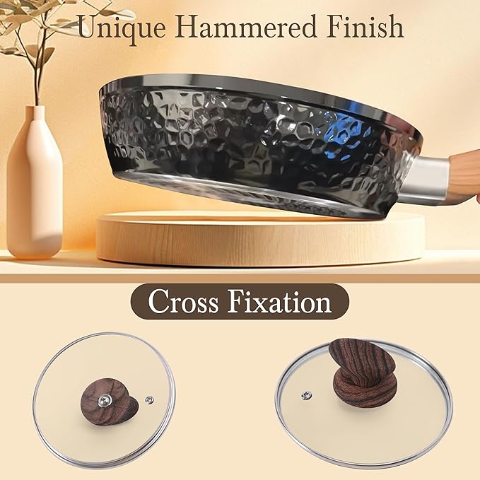 Kitchen Academy Induction Pots and Pans Set Non Stick - 12 Pcs Nonstick Kitchen Cookware Set, Black Hammered Cooking Pans Set