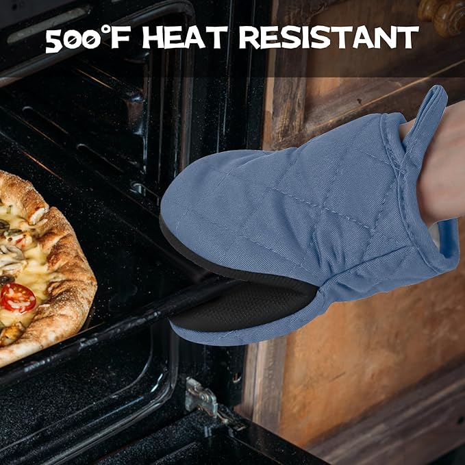 Oven Mitts and Pot Holders Set, Pack of 4, Heat Resistant Silicone Kitchen Mini Oven Mittens for 500 Degrees, Mini Oven Gloves and Hot Pads for Baking Grilling Barbecue Microwave Machine Washable
