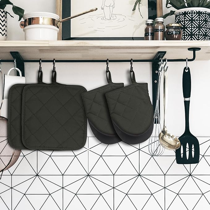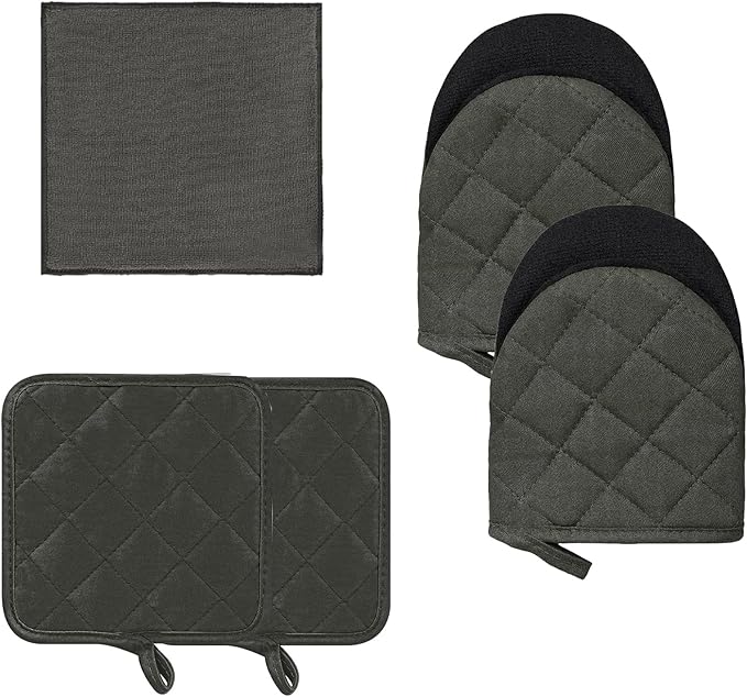 Kitchen Set Pack Of 5, Oven Mitts Pot Holders Pad And Towel Set, Heat Resistant Silicone Kitchen Mini Oven Mittens for 500 Degrees, Mini Oven Gloves and Hot Pads for Baking Grilling Barbecue Microwave