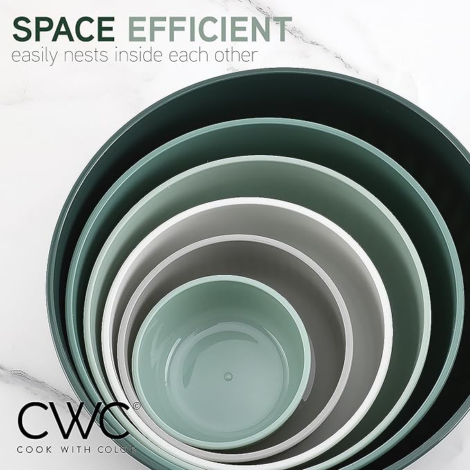 COOK WITH COLOR Prep Bowls with Lids- Wide and Deep Nesting Plastic Small Mixing Bowl Set with Lids, 12 Piece Set - Wide Bowls, Sage