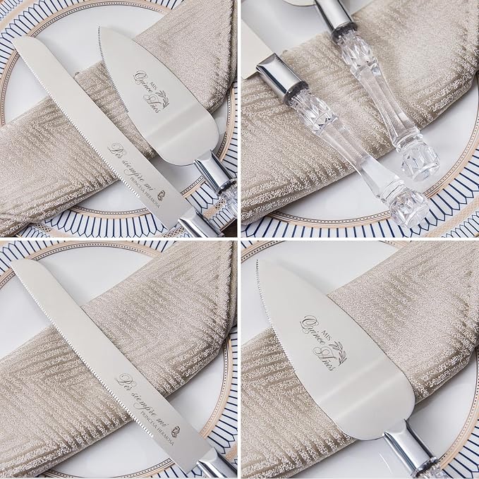 About This 🍰Pure/Engraved Knife Sets- Classic 2pcs cake knife sets, solid silver, 'Mr Mrs', 'Let's eat cake together forever', 'Mis... Read more