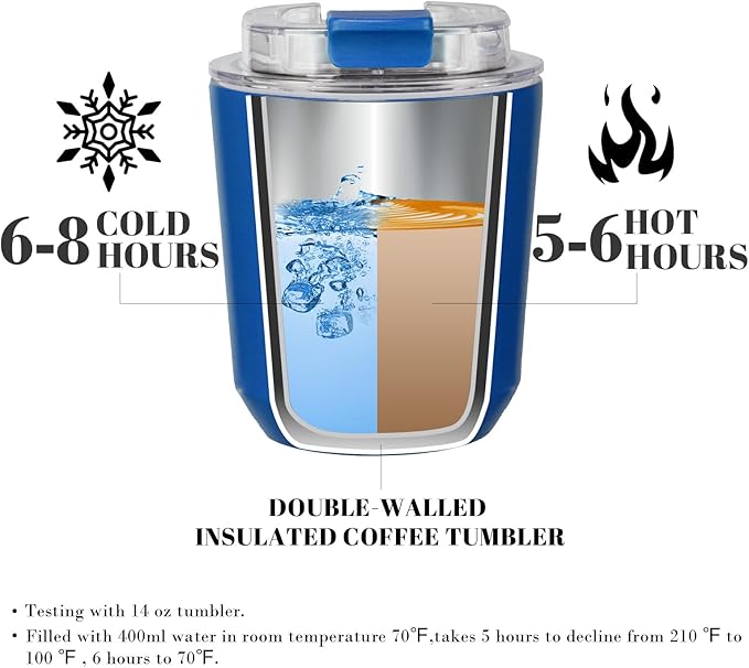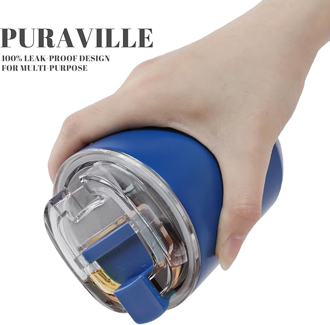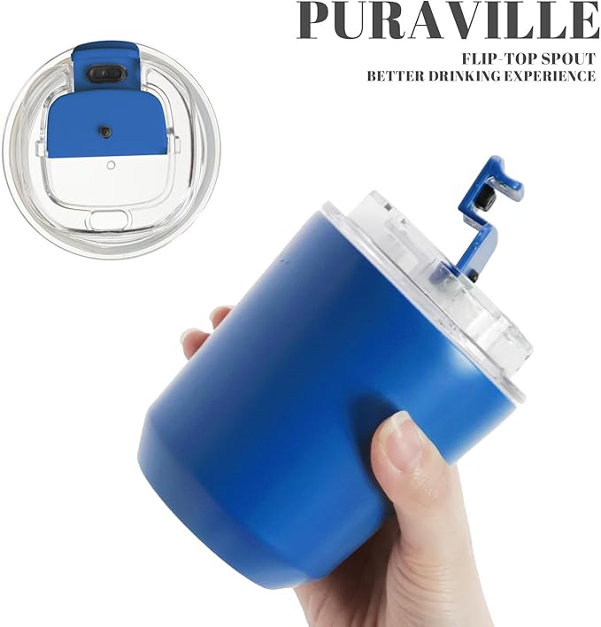 Puraville Insulated Tumblers with Lid, 10 oz Travel Coffee Mug Stainless Steel Vacuum Cup, Leak Proof Reusable Double Walled Coffee Tumbler for Iced and Hot Drinks, Klein Blue