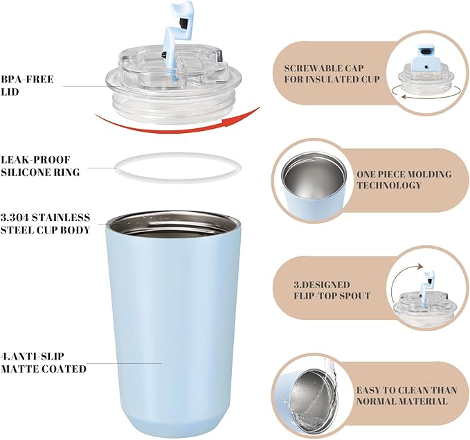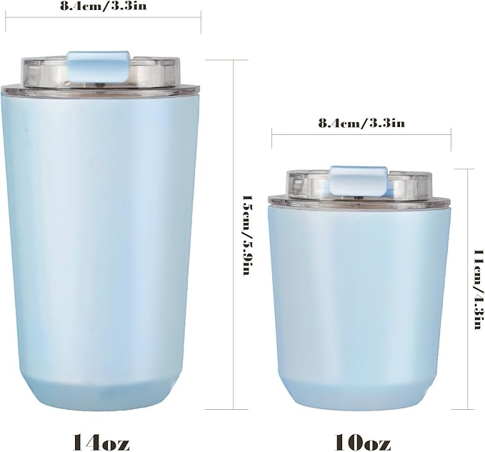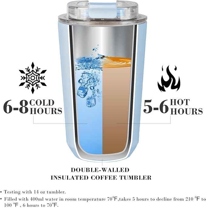Puraville Insulated Tumblers with Lid, 14 oz Travel Coffee Mug Stainless Steel Vacuum Cup, Leak Proof Reusable Double Walled Coffee Tumbler for Iced and Hot Drinks, Light Blue