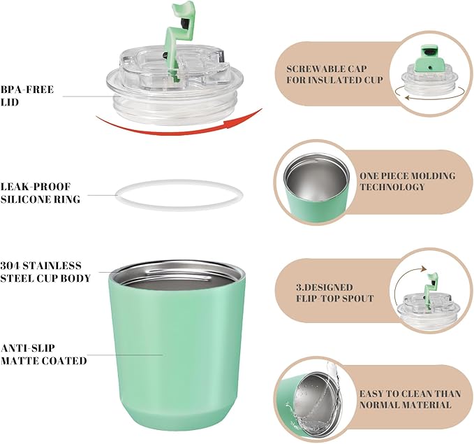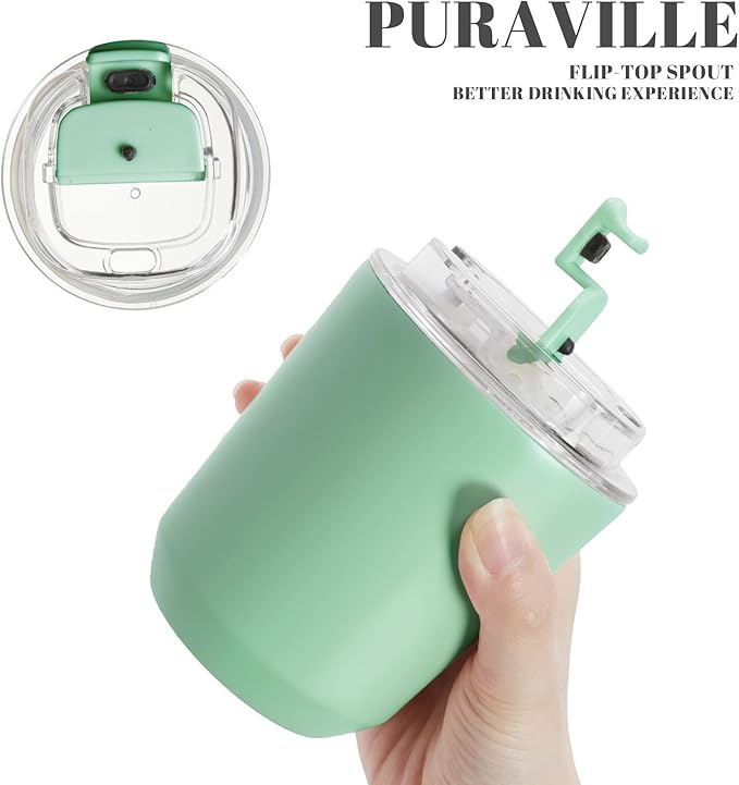 Puraville Insulated Tumblers with Lid, 10 oz Travel Coffee Mug Stainless Steel Vacuum Cup, Leak Proof Reusable Double Walled Coffee Tumbler for Iced and Hot Drinks, Green