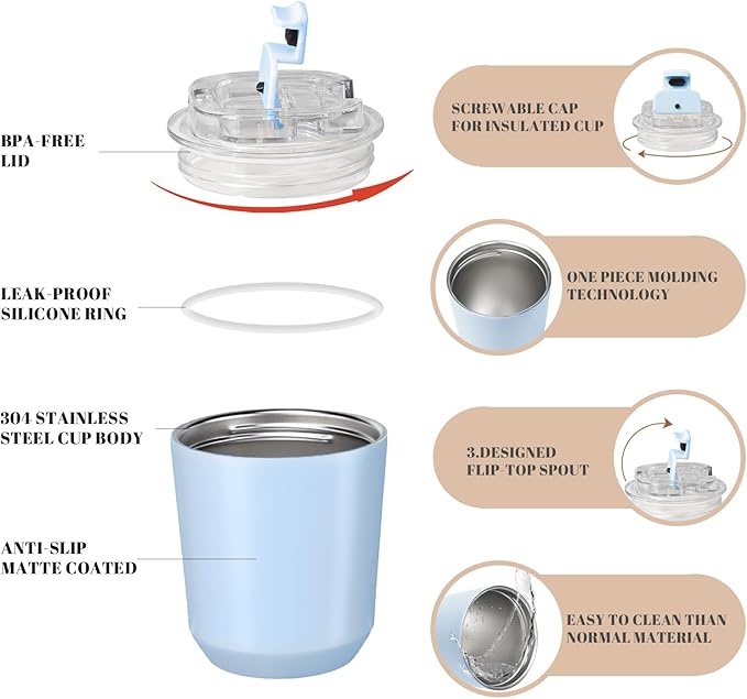 Puraville Insulated Tumblers with Lid, 10 oz Travel Coffee Mug Stainless Steel Vacuum Cup, Leak Proof Reusable Double Walled Coffee Tumbler for Iced and Hot Drinks, Light Blue