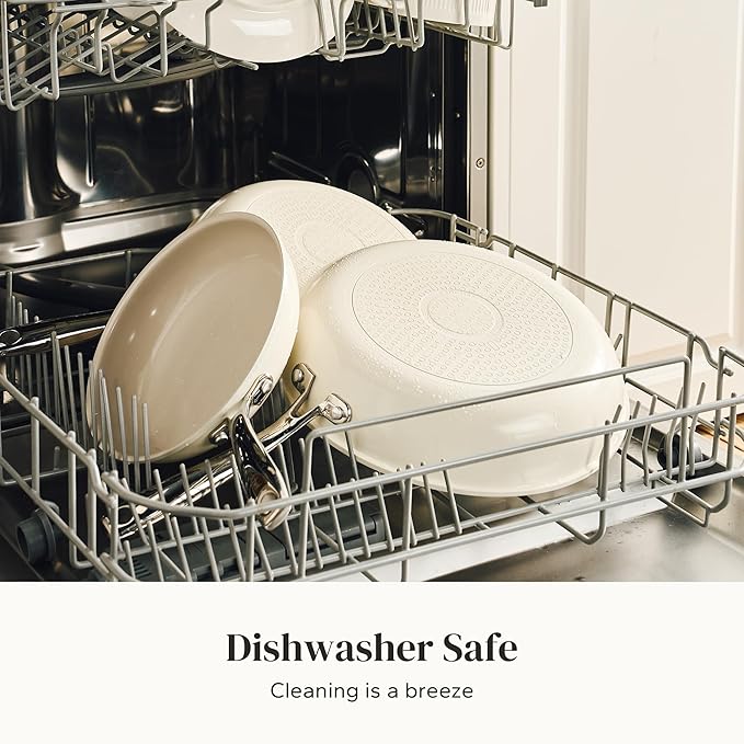 Redchef Nonstick Frying Pans Set, Ceramic Pan Skillet, Non Toxic Pans for Cooking, 8" 9.5" 11" Ceramic Frying Pan Set PFAS & PTFE & PFOA Free with Stay Cool Handle, Dishwasher & Oven Safe, Beige White