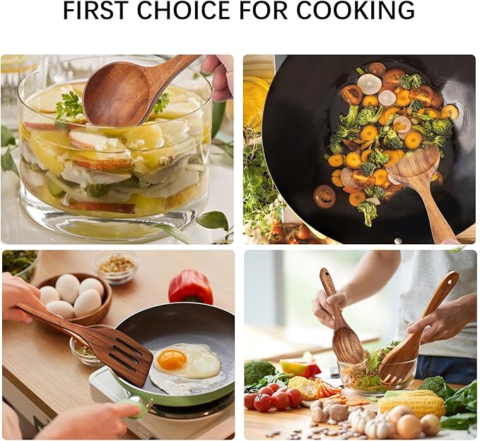 Wooden Spoons for Cooking,12 Pack Wooden Utensils for Cooking Wooden Cooking Utensils Wooden Kitchen Utensils Set Natural Teak Wooden Spatulas for Cooking