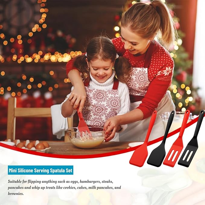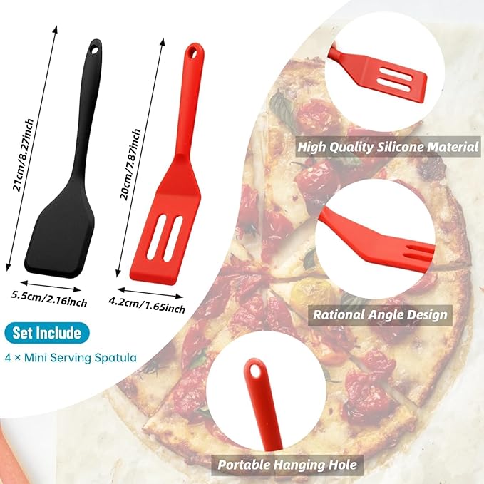 Mini Silicone Brownie Serving Spatula Set Flexible Non Stick Serve Turner Heat Resistant Cooking Spatula for Flip Eggs Crepe Steak Pizza Kitchen Utensil (Red, Black)
