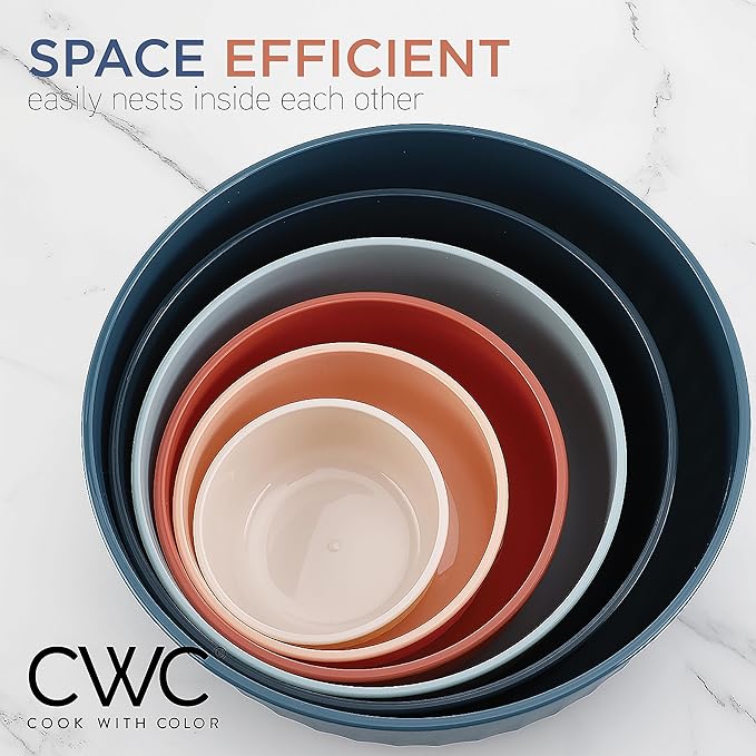 About This Cook with Color 12 piece plastic mixing bowl set - non slip bowls with lids; easy to clean,... Read more