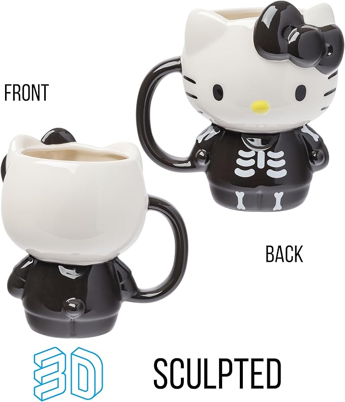 About This 3D SCULPTED MUG: Enjoy your favorite drink in this Hello Kitty Skeleton Costume Ceramic 3D Sculpted Mug. MULTIPLE... Read more
