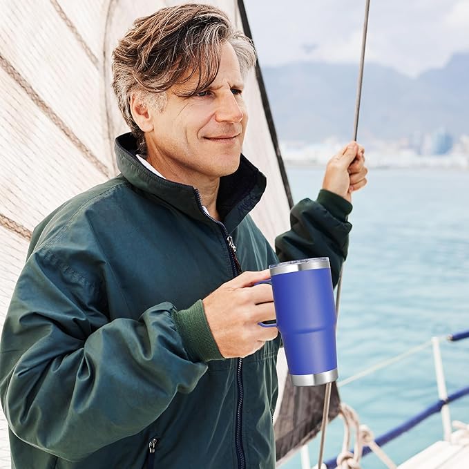 20 oz Stainless Steel Tumbler with Handle Bulk Metal Insulated Tumblers Travel Coffee Mug with Handle Double Wall Tumbler Cup with Lid and Straw, Blue 12 Pack