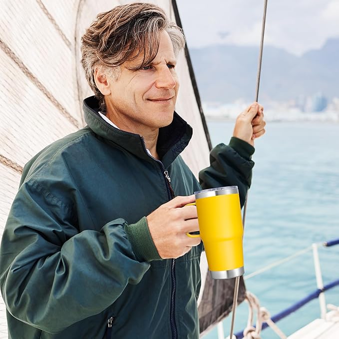 20 oz Stainless Steel Tumbler with Handle Bulk Metal Insulated Tumblers Travel Coffee Mug with Handle Double Wall Tumbler Cup with Lid and Straw, Yellow 12 Pack