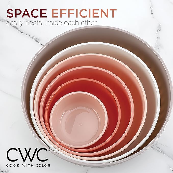COOK WITH COLOR Prep Bowls with Lids- 12 Piece Nesting Plastic Small Mixing Bowl Set with Lids (Multi Colored), Grey/Pink