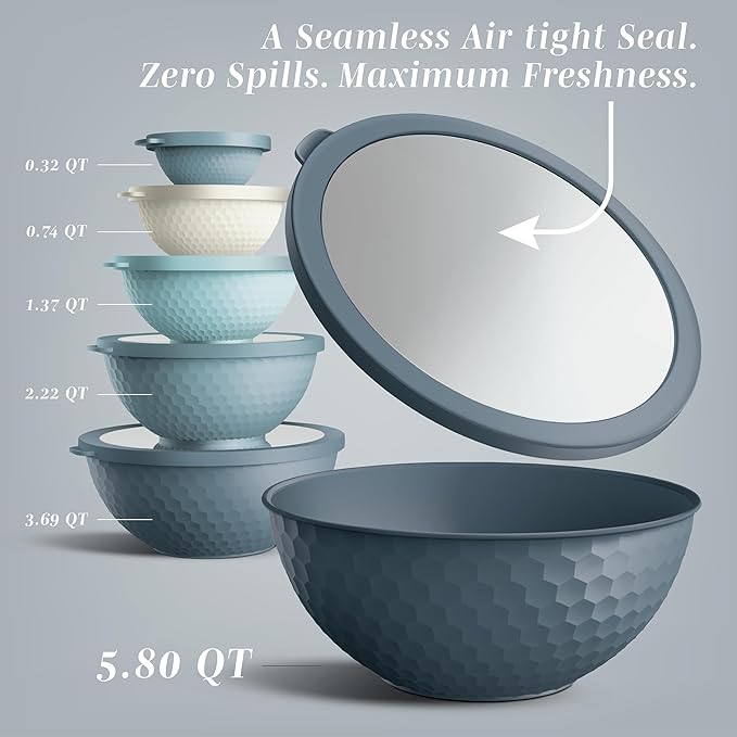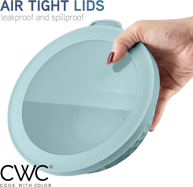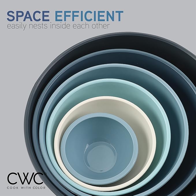 COOK WITH COLOR Mixing Bowls with Lids - 12 Piece Plastic Nesting Bowls Set includes 6 Prep Bowls and 6 Lids, Non Slip Bottom and Embossed Design - Microwave Safe (Blue)