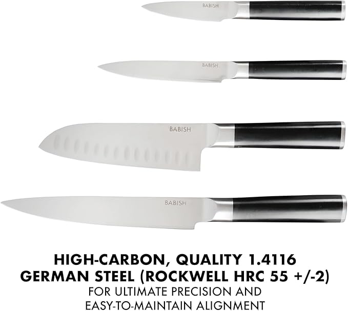 Babish 14-Piece Full Tang Forged Kitchen Knife Set – High-Carbon 1.4116 German Steel Cutlery with Protective Sheaths – Professional Chef Knife Set
