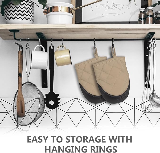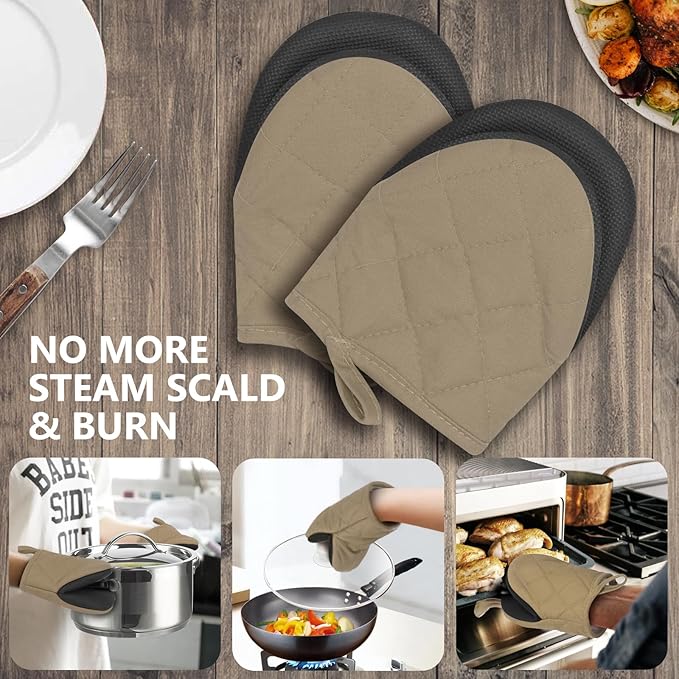 1 Pair Short Oven Mitts - Silicone Kitchen Oven Gloves High Heat Resistant 500℉, Mini Oven Mits with Non-Slip Grip Surfaces and Hanging Loop for BBQ, Baking, Cooking and Grilling (Coffee)