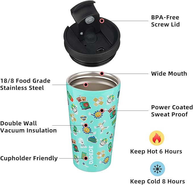BJPKPK 18oz Stainless Steel Insulated Tumbler With lid And Straw Travel Coffee Thermal Tumblers Cup For Women And Men,Spring Party Green