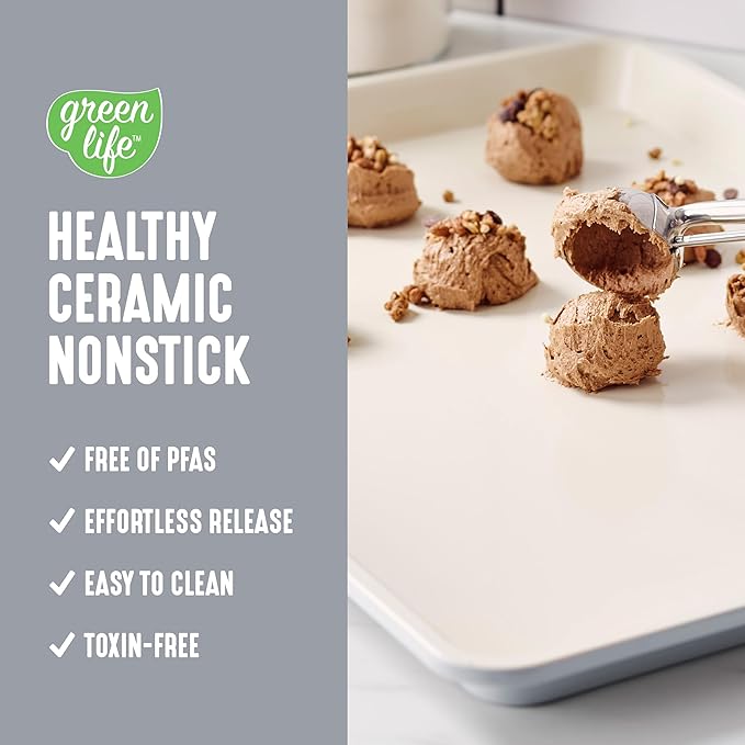 GreenLife Bakeware 18” x 13” Half Cookie Sheet Baking Pan, Non-Toxic PFAS-Free Healthy Ceramic Nonstick, Oven Safe to 450°F, Easy Release, Even Heating, Easy Clean, Gray