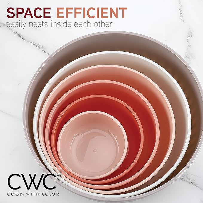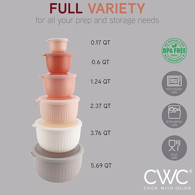 About This Cook with Color 12 piece plastic mixing bowl set - non slip bowls with lids; easy to clean,... Read more