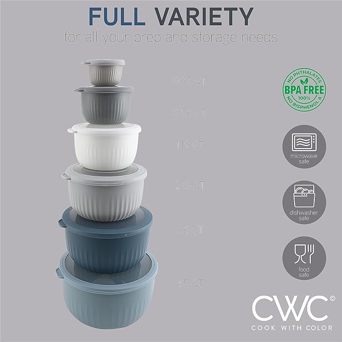 About This Cook with Color 12 piece plastic mixing bowl set - non slip bowls with lids; easy to clean,... Read more