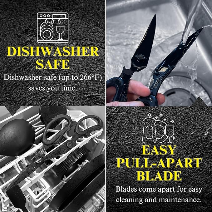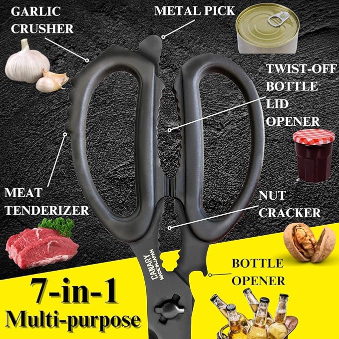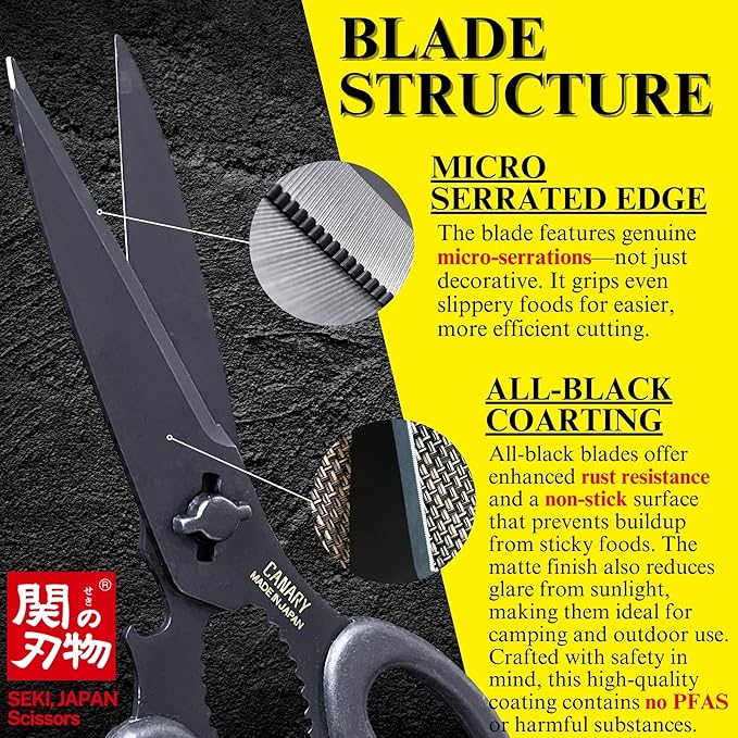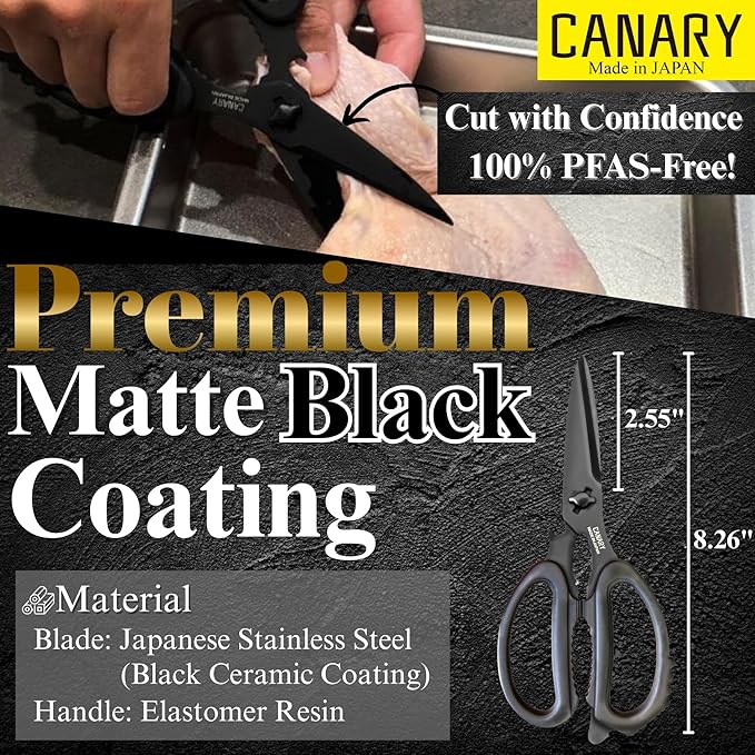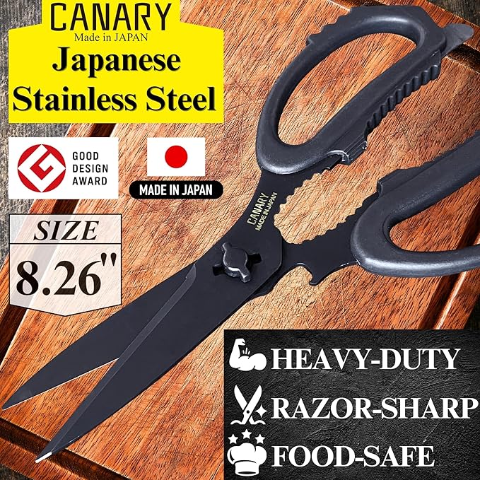 CANARY Japanese Kitchen Scissors All Purpose Heavy Duty 8.2" Matte Black, Made in JAPAN, Dishwasher Safe Come Apart Blade, Multipurpose Kitchen Shears, Sharp Serrated Japanese Stainless Steel Blade