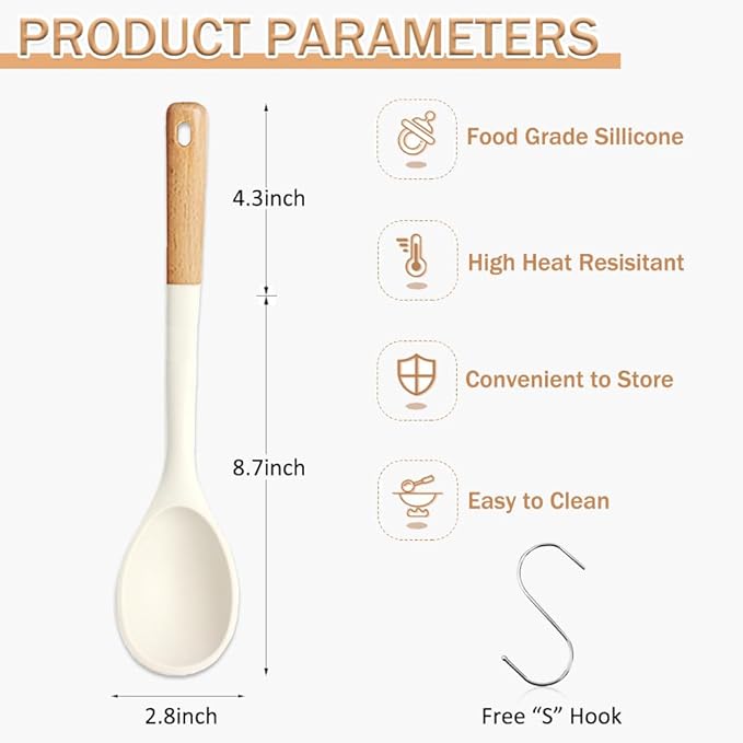 About This Silicone Cooking Spoon for Nonstick Cookware: This kitchen spoons includes a solid serving spoon and a stainless steel... Read more