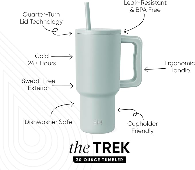 Simple Modern 30 oz Trek Tumbler with Handle and Straw Lid | Cup Holder Friendly Insulated Stainless Steel Travel Mug | Sea Glass Sage