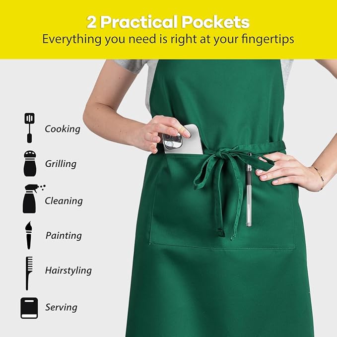 ROTANET Extra Large Apron for Men Adjustable Bib Aprons with 2 Pockets Cooking Kitchen Women Chef Water & Oil Resistant