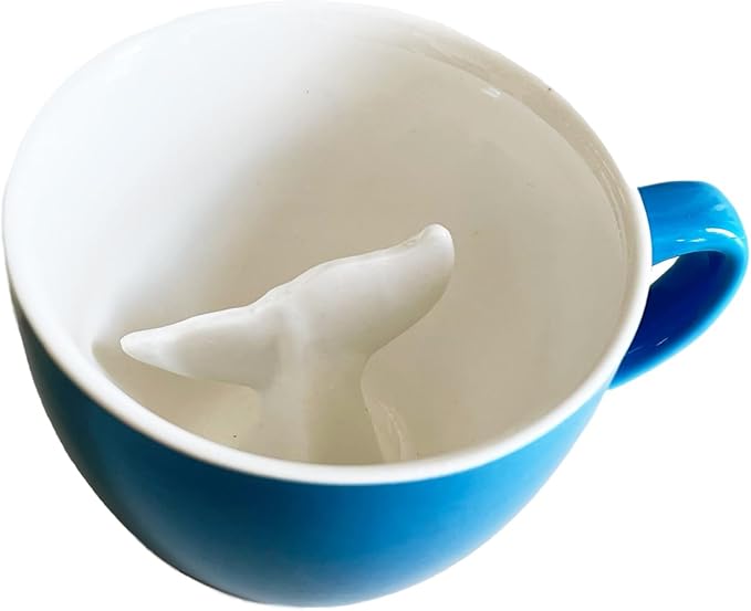 Creature Cups Whale Tail Ceramic Mug β 11 oz Ocean Blue Coffee Cup with Hidden 3D Whale Tail Inside β Unique Gift for Coffee, Tea & Marine Life Lovers