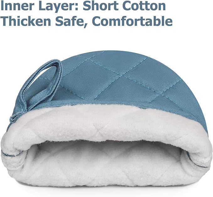 • PROTECT YOUR HANDS: These pot holder has 2-layer, with soft inner. They will protect your hands from heat, steam and grease. These mitts measure 6.8 inches x 5.3 inches, perfect for small hands.