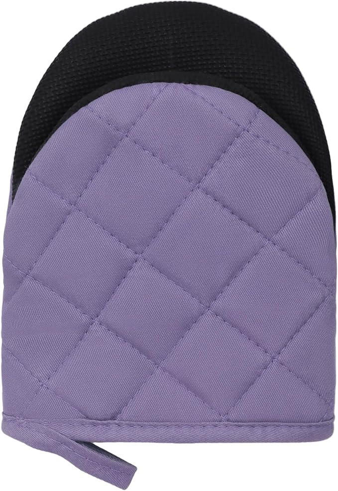 1 Pair Short Oven Mitts, Heat Resistant Silicone Kitchen Mini Oven Mitts for 500 Degrees, Non-Slip Grip Surfaces and Hanging Loop Gloves, Baking Grilling Barbecue Microwave Machine Washable