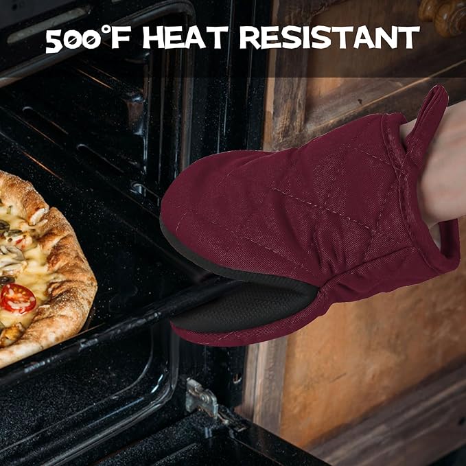 Oven Mitts and Pot Holders Set, Pack of 4, Heat Resistant Silicone Kitchen Mini Oven Mittens for 500 Degrees, Mini Oven Gloves and Hot Pads for Baking Grilling Barbecue Microwave Machine Washable