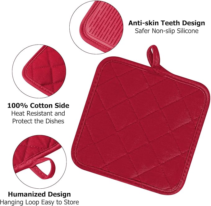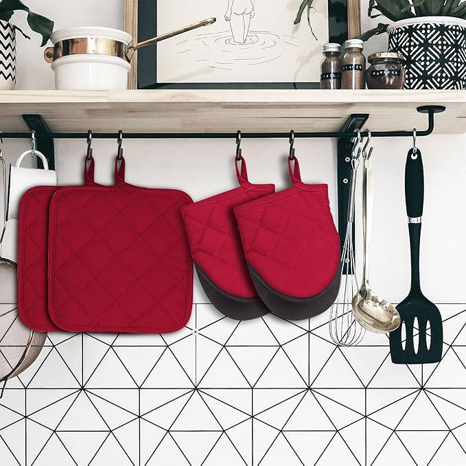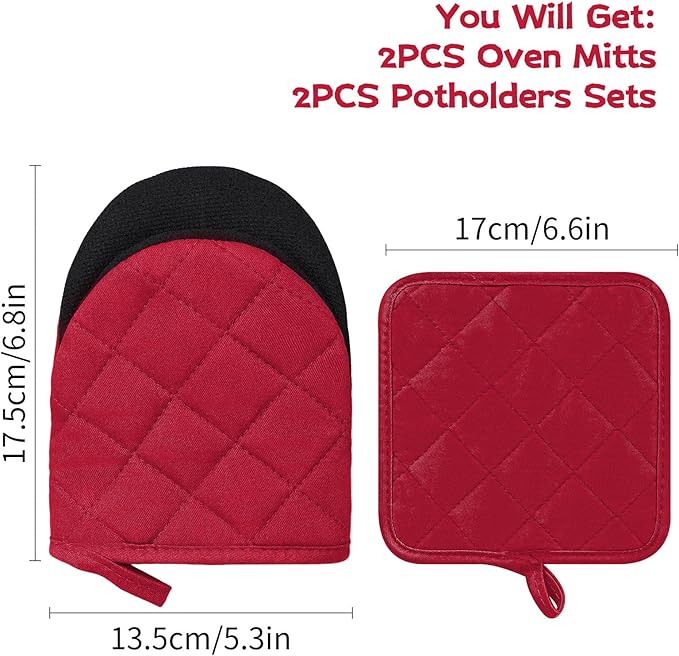 Oven Mitts and Pot Holders Set, Pack of 4, Heat Resistant Silicone Kitchen Mini Oven Mittens for 500 Degrees, Mini Oven Gloves and Hot Pads for Baking Grilling Barbecue Microwave Machine Washable