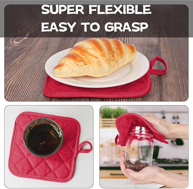 About This 4 PIECE GREAT VALUE HOUSEHOLD ESSENTIALS PACK: Super value for 4pcs short oven mitts and pot holders, including... Read more
