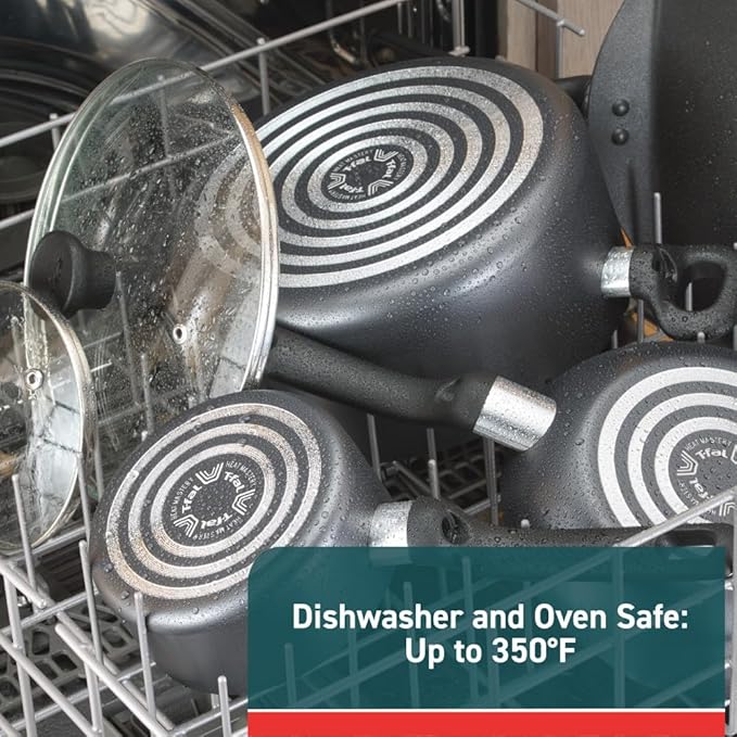 T-fal Initiatives Nonstick Cookware Set 6 Piece Oven Safe 350F Cookware, Pots and Pans, Oven, Broil, Dishwasher Safe Gray