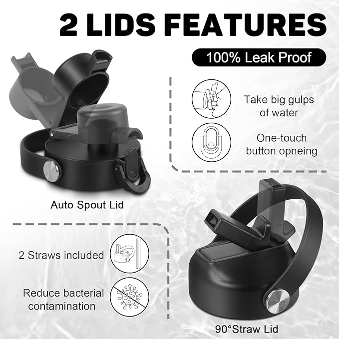 Water Bottle 40oz, Insulated Tumblers with Handle & Straw Lid, Insulated Water Bottle Fits in Cup Holder, Double Wall BPA-Free, Stainless Steel Travel Cup Leak-proof to Keep Cold 24H&Hot12H