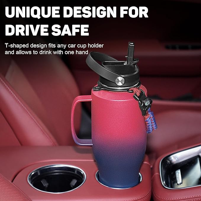 • 【T-SHAPED FOR CUP HOLDER】 Designed with a sleek and slim outline, this T-shaped water bottle fits in most car cup holders. ABOTOCUP T-shaped Insulated Tumblers suitable for outdoor when driving, cycling, beach holidays, and camping. 40oz large capacity keeps your adventures running longer.