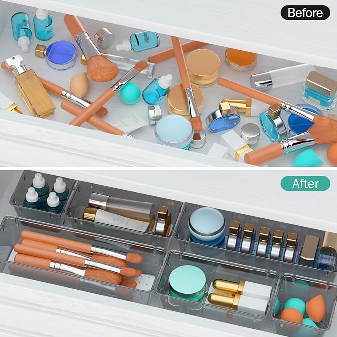 WOWBOX 9 Pack Clear Drawer Organizer Set, Acrylic Drawer Storage Trays, Storage Bins for Makeup, Cosmetics, Jewelries, Utensils, Gadgets, Office, Black