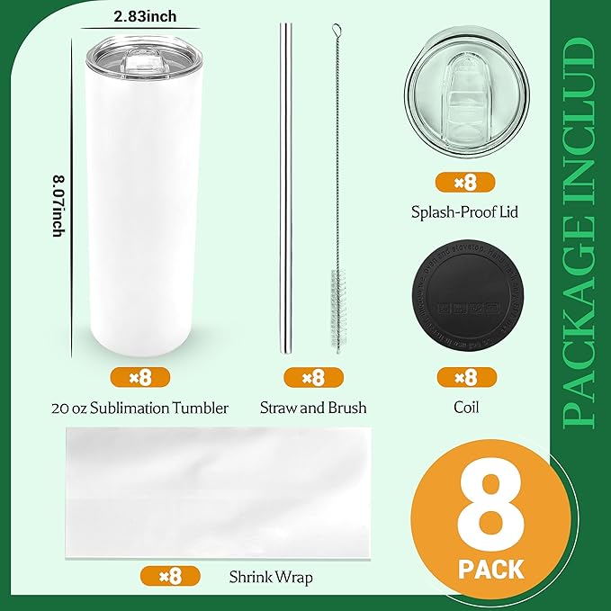 About This 【8 Pack 20 oz sublimation tumbler skinny straight】【Green Light in the Dark】【Upgraded Individual Gift Box】【Special Coating 】 Support... Read more