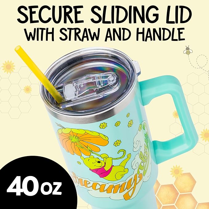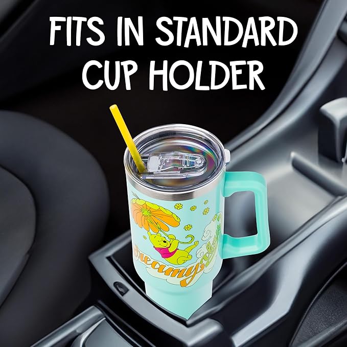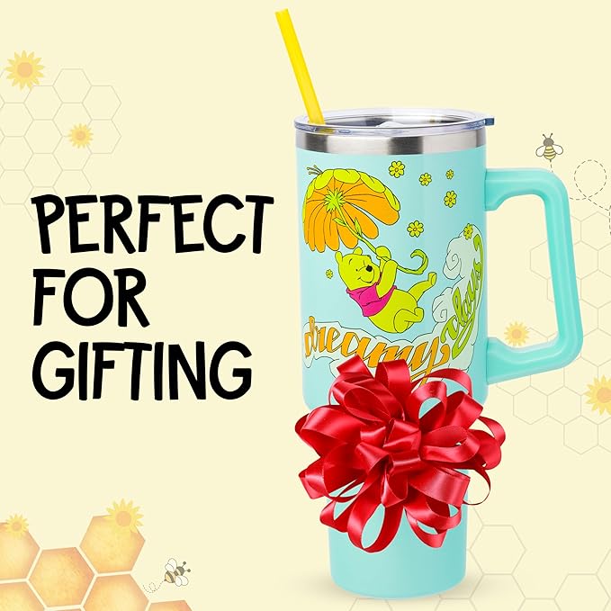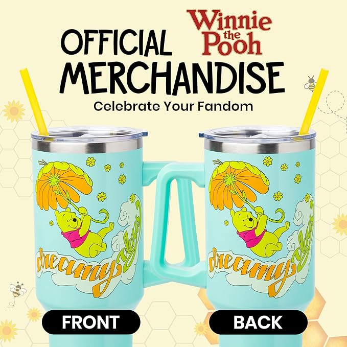 Silver Buffalo Disney Winnie the Pooh “Dreamy Days” Retro Art Stainless Steel Tumbler with Handle and Straw, Fits in Standard Cup Holder, 40 Ounces