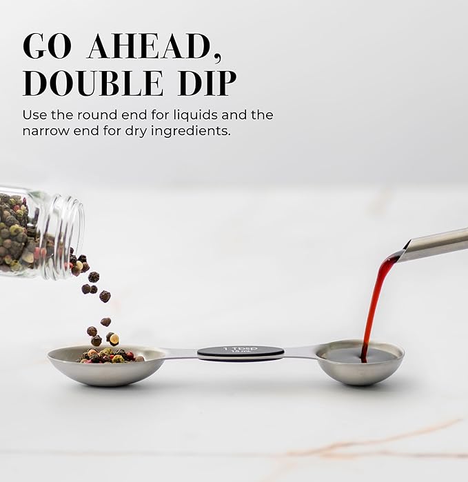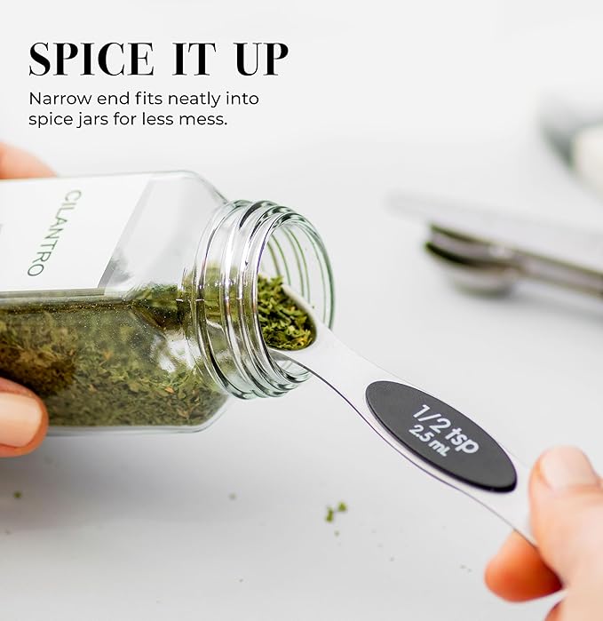 Stanless Steel Magnetic Measuring Spoons Set with Leveler - 8-Piece Heavy Duty Metal, Dual Sided, Stackable, BPA Free, Stainless Steel Measuring Spoons for Dry & Liquid Ingredient - Fits in Spice Jars