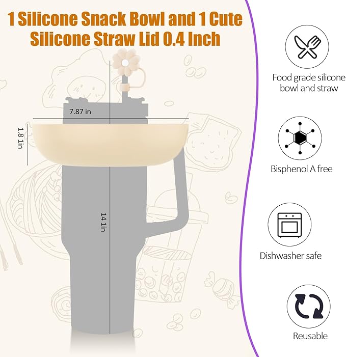 Snack Bowl for Stanley Cup 40 oz with Handle-Perfectly Compatible with Stanley Quencher H2.0 Tumbler 40 oz with Handle, Reusable Silicone Snack Tray, Stanley cup accessories (Cream Snack Bowl)