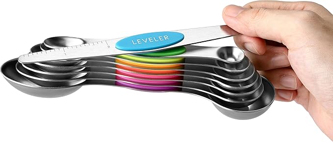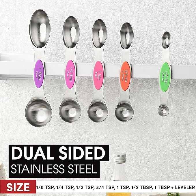 Spring Chef Stainless Steel Magnetic Measuring Spoons Set of 8 with Leveler, Nesting Metal Teaspoon & Tablespoon Measuring Spoons, Kitchen Gadgets for Baking & Cooking, Fits in Most Spice Jars - Neon