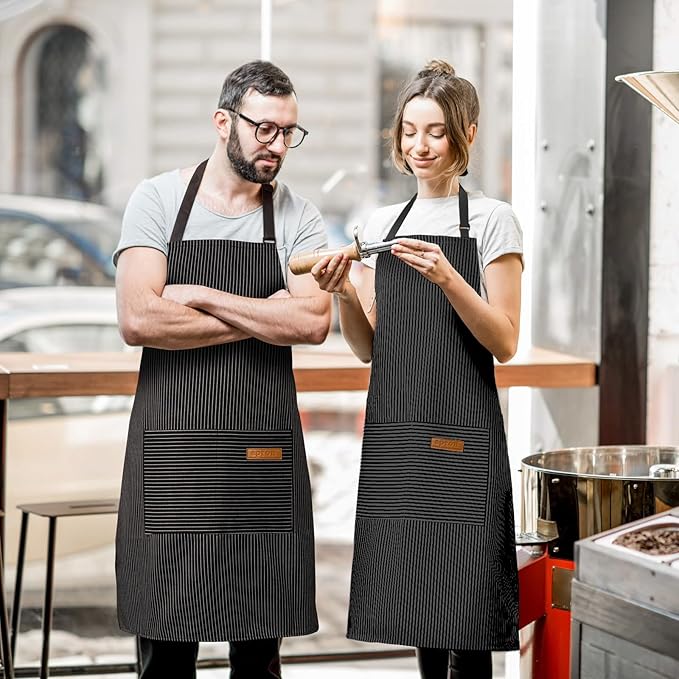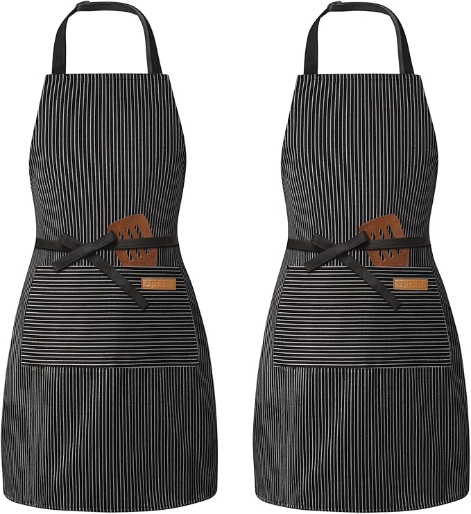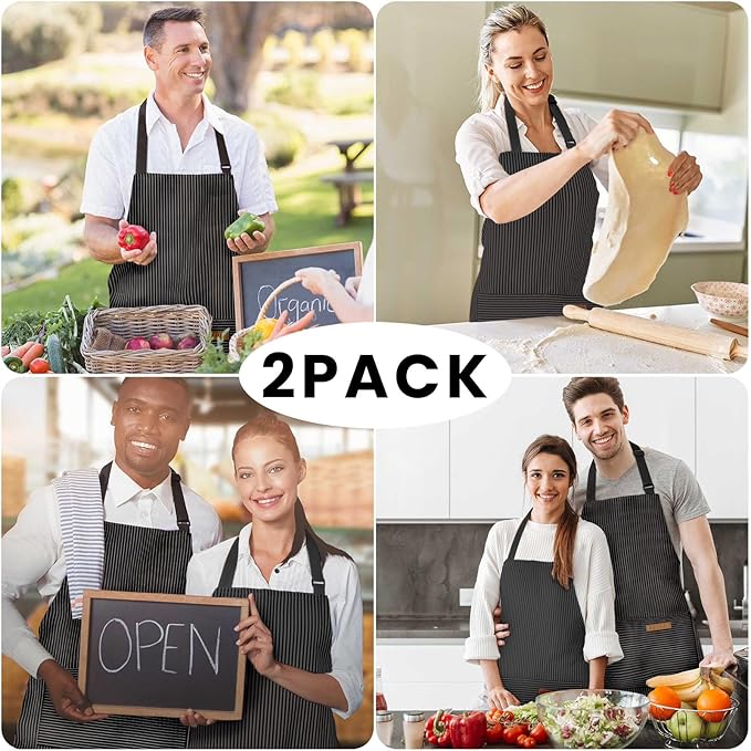 2 Pack Adjustable Bib Apron with 2 Pockets Chef Cooking Kitchen Restaurant Aprons for Women Men