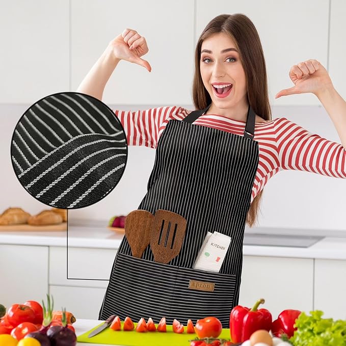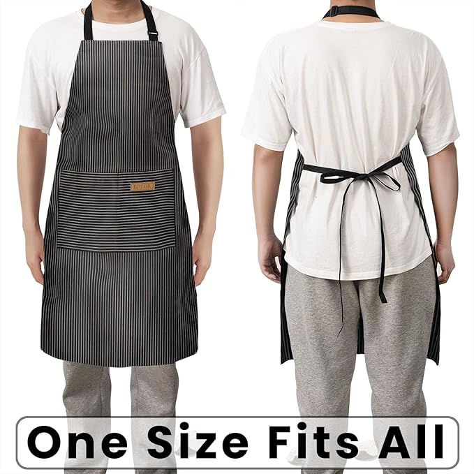 • Adjustable Shoulder Strap: 36"x 27" size Large cooking aprons cover from chest to knee. Our bib apron can adjust the neckline and waistband to the desired size for the most comfortable wearing